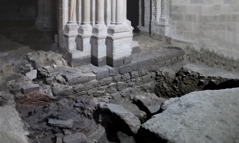 Los trabajos arqueológicos se desarrollaron entre los años 2017 y 2021, en el ámbito de las obras de restauración de la monumental escalinata barroca de acceso a la portada occidental de la catedral y en la llamada Cripta del Pórtico de la Gloria o “Catedral vieja”, situada en los cimientos del propio Pórtico. Todas estas actuaciones fueron promovidas por la Fundación Catedral de Santiago y contaron con la participación del Ministerio de Transportes, Movilidad y Agenda Urbana del Gobierno de España.
