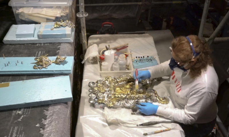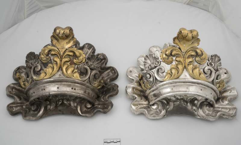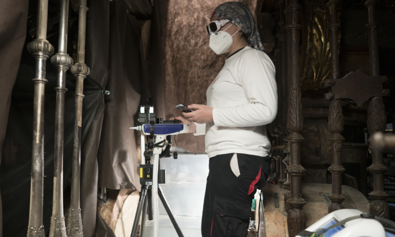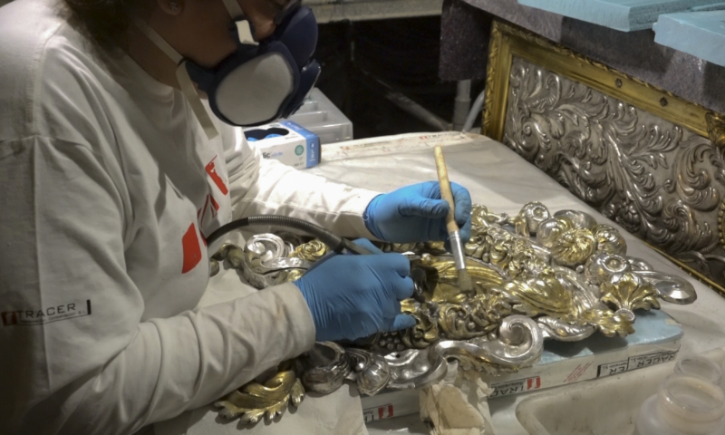 El proceso de limpieza del metal por medios mecánico físicos y con tecnología láser, está recuperando el característico brillo de la plata y descubriendo detalles técnicos y artísticos de incuestionable valor.