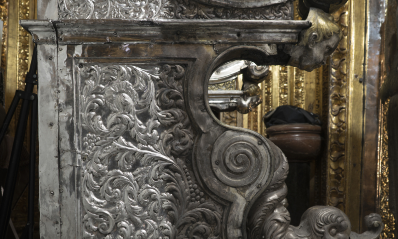 El tratamiento de restauración-conservación que se está acometiendo dentro de las actuaciones contempladas en el convenio de colaboración, suscrito el 23 de septiembre de 2015, entre la Consellería de Cultura y la Fundación Catedral de Santiago para el desenvolvimiento y ejecución de las intervenciones de conservación y restauración contempladas en el Plan Director de la Catedral; y que está realizado por la empresa TRACER Restauración y Conservación S.L., tiene como finalidad estabilizar el conjunto y aplicar los tratamientos de conservación restauración que permitan recuperar la visión de esta importante y singular obra argéntea. Muchas de las piezas han sido desmontadas para su optimo tratamiento, lo que ha permitido conocer interesantes detalles constructivos y ornamentales.